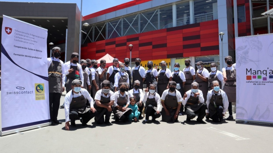 Jóvenes de las escuelas Manq’a y los Centros de Educación Alternativa y Especial públicos que apoya el proyecto Formación Técnica Profesional, realizaron un Ayni gastronómico en la estación roja de Mi Teleférico de la popular zona 16 de Julio.  El objetivo de este espacio fue el promover y compartir degustaciones, conocimientos y saberes ancestrales de nuestra tierra con la gente.