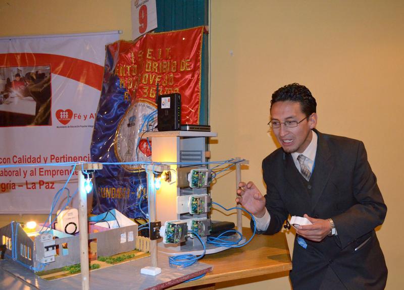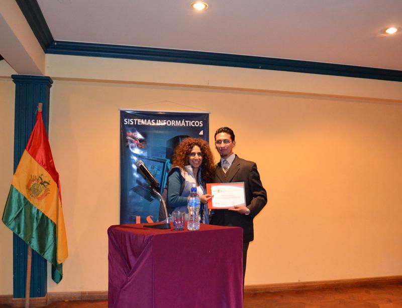 El momento en que el profesor recibió su certificado y premio respectivo, un equipo de música.  Felicitaciones al profesor por su iniciativa y su importante ejemplo con esta experiencia educativa del sistema PLC.