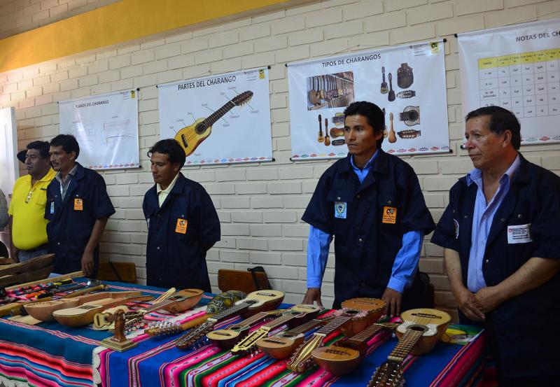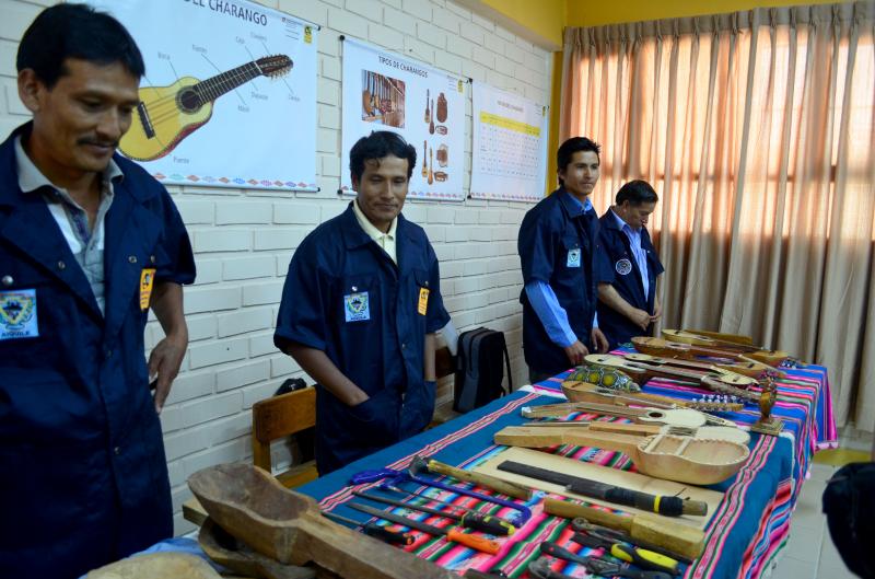 “Muchos de nosotros solo hacíamos la parte rustica del charango, nos faltaba el barnizado, los trastes con las medidas exactas, las clavijas, el tallado y otros detalles finales para contar con un producto terminado de mayor valor económico”, explica Daniel Mérida estudiante de la carrera quien cuenta que muchas familias de la zona viven de la venta de charangos, que en las familias la madre y el padre y los hijos saben cómo fabricar un charango y precisamente por los ingresos que obtienen con la construcción de Charangos es que no han migrado a otras regiones.