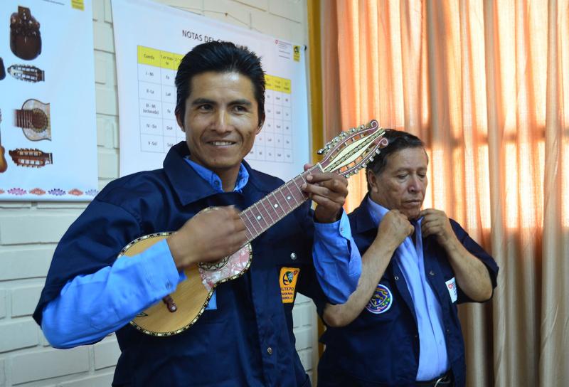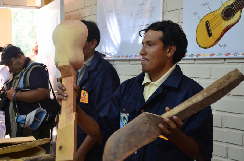 La formación en Construcción de Charangos, según el docente Moisés Fernández, aborda el diseño y cálculo de materiales, la selección de maderas, la organización y limpieza de los talleres, el ensamblaje del charango, los proyectos laborales, que incluyen orientaciones de  cómo recurrir a préstamos, costos de venta y otros.