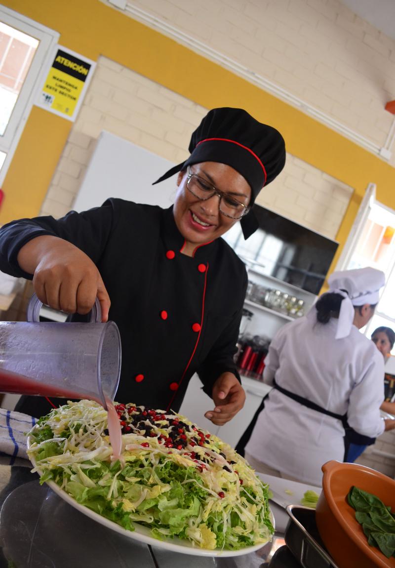 Mirta Paco, Directora del CEA, explica que todas las carreras fueron creadas a demanda de la propia población y que la carrera de Gastronomía y Alimentación surge por la afluencia de turistas en la zona y la necesidad de mejorar las condiciones de atención que se brinda a los mismos.