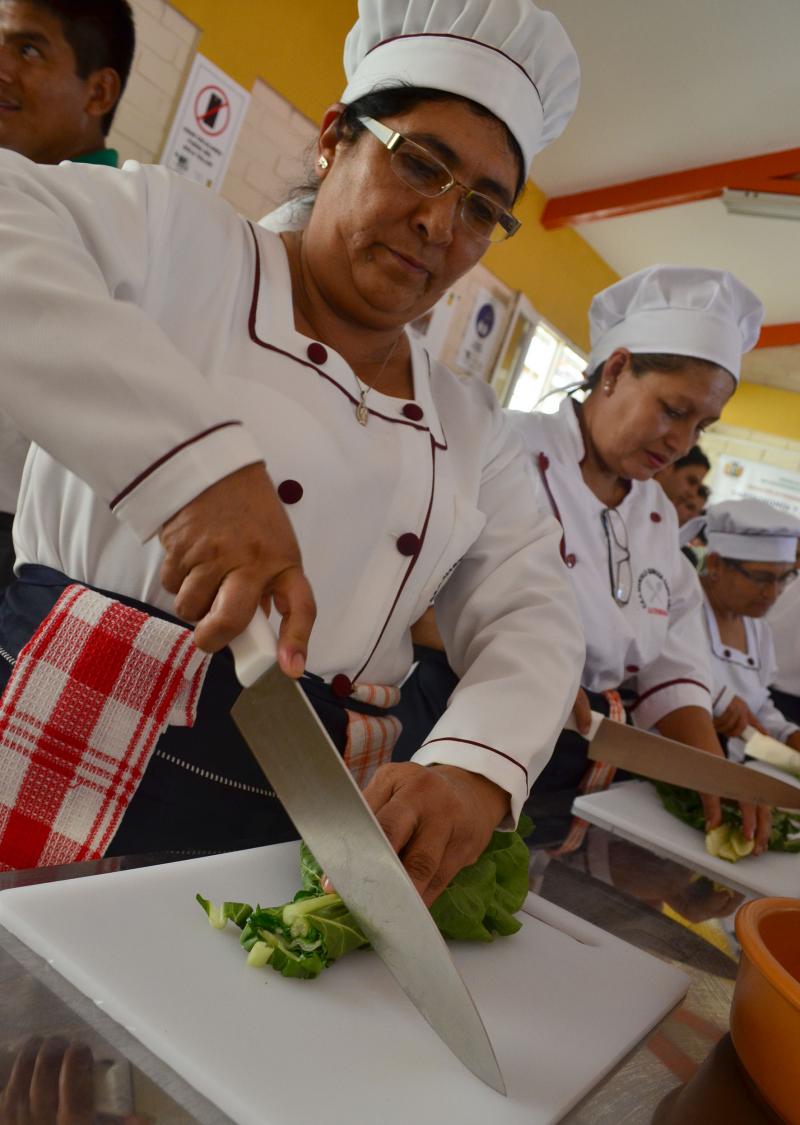 A la fecha están en el primer módulo que aborda la adquisición de destrezas en el manipuleo de chuchillos de cocina y cortes de vegetales