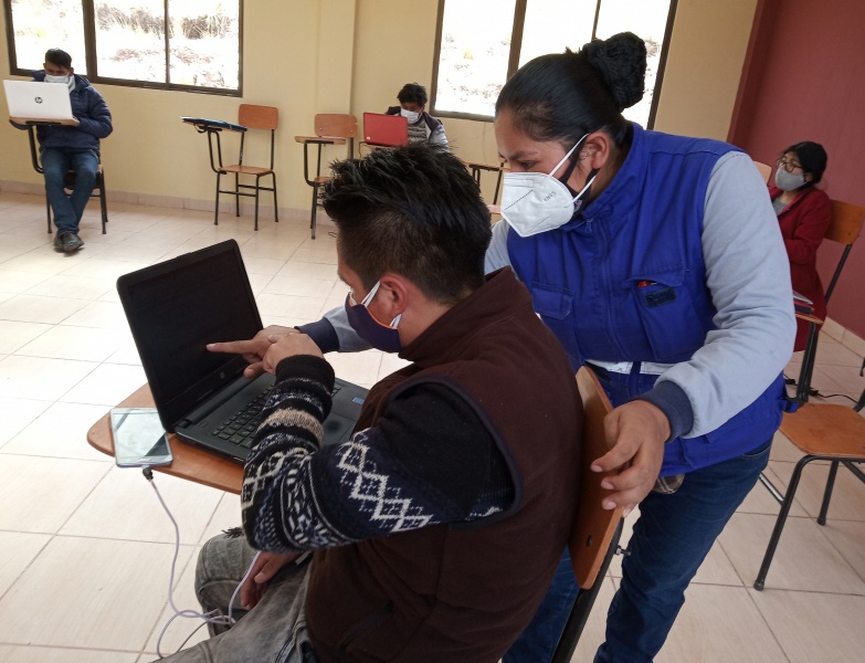 “Durante la cuarentena hemos suspendido las clases, pero en función de las necesidades nos hemos visto obligados a comunicarnos con los estudiantes. Es importante informar que nosotros en los Institutuos Tecnológicos tenemos una carga horaria del 70% de horas prácticas y el 30% de horas teóricas. Por esta razón, desde el mes de septiembre estamos trabajando con ellos, siguiendo estrictamente el protocolo de bioseguridad”, dijo la Lic. Lilian Bustos, rectora del Instituto Tecnológico “Jach’a Omasuyos” del municipio de Achacachi del departamento de La Paz.