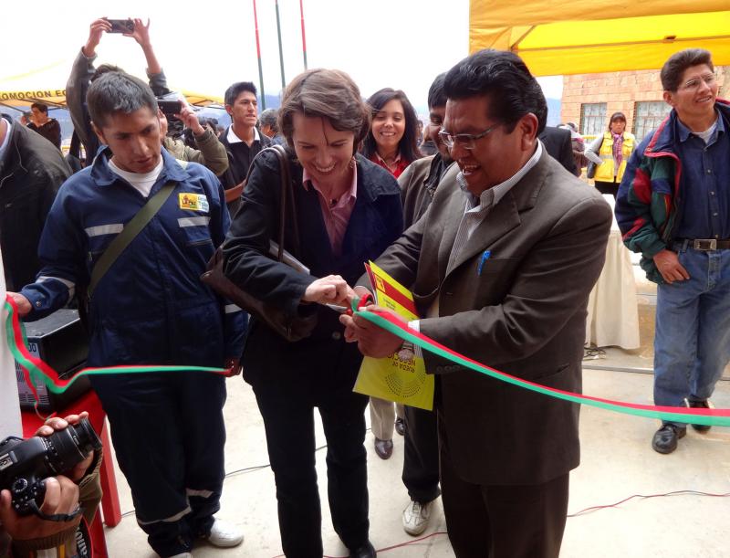 La jornada de hoy la jefa de la Cooperación Suiza en Bolivia, Barbara Jäggi Hasler visitó las instalaciones de la Escuela Taller Municipal (ETM) ubicadas en dos Barrios de Verdad: Alto Pasankeri y Alto Tacagua del Macrodistirto de Cotahuma. La ETM inició la gestión 2015 para los procesos de capacitación que se llevan adelante en Electromecánica, Electricidad y Metalmecánica.