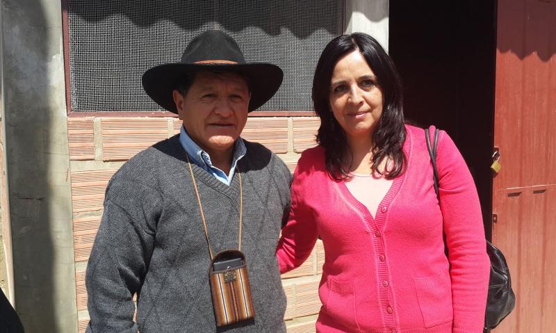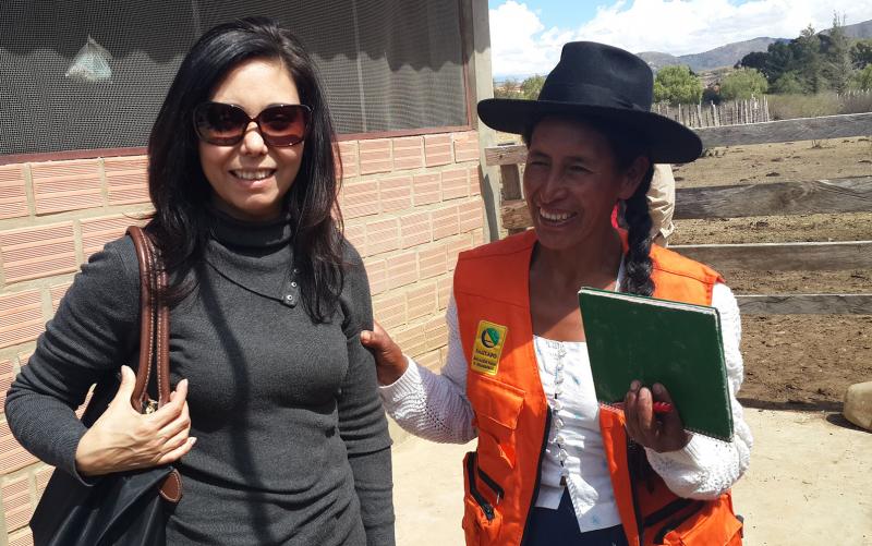 En la foto Virginia Núñez (de naranja) y Amparo Ergueta, oficial de programas de la Cooperación Suiza en Bolivia.