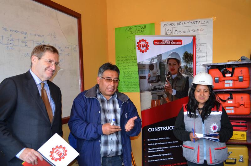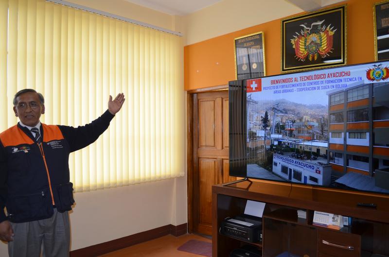 El pasado 10 de octubre estuvo en Bolivia una comitiva diplomática suiza que visitó el Instituto Técnico Tecnológico Ayacucho en la ciudad de La Paz. “Han escogido bien el nombre del Instituto Ayacucho, porque la educación técnica para los jóvenes es una buena batalla y que bien sabemos, también en Suiza, que todo debe empezar con la educación”, expresó el Secretario de Estado Adjunto para las Américas del Departamento Federal de Asuntos Exteriores de Suiza, Embajador Bénédict de Cerjat.