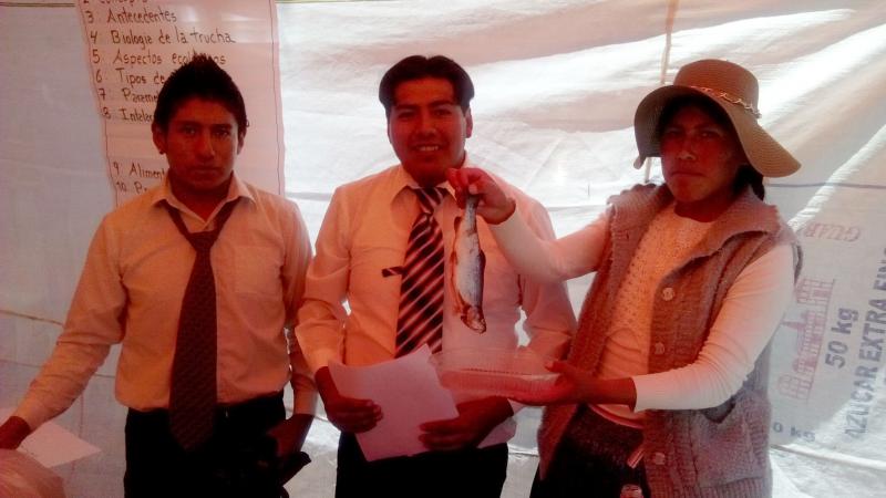 Un grupo de participantes de la carrera de contabilidad. Indican que quieren emprender con un criadero de truchas con un aporte inicial de Bs. 3. 500.