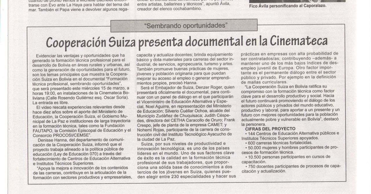 Cooperación Suiza presenta documental en Cinemateca