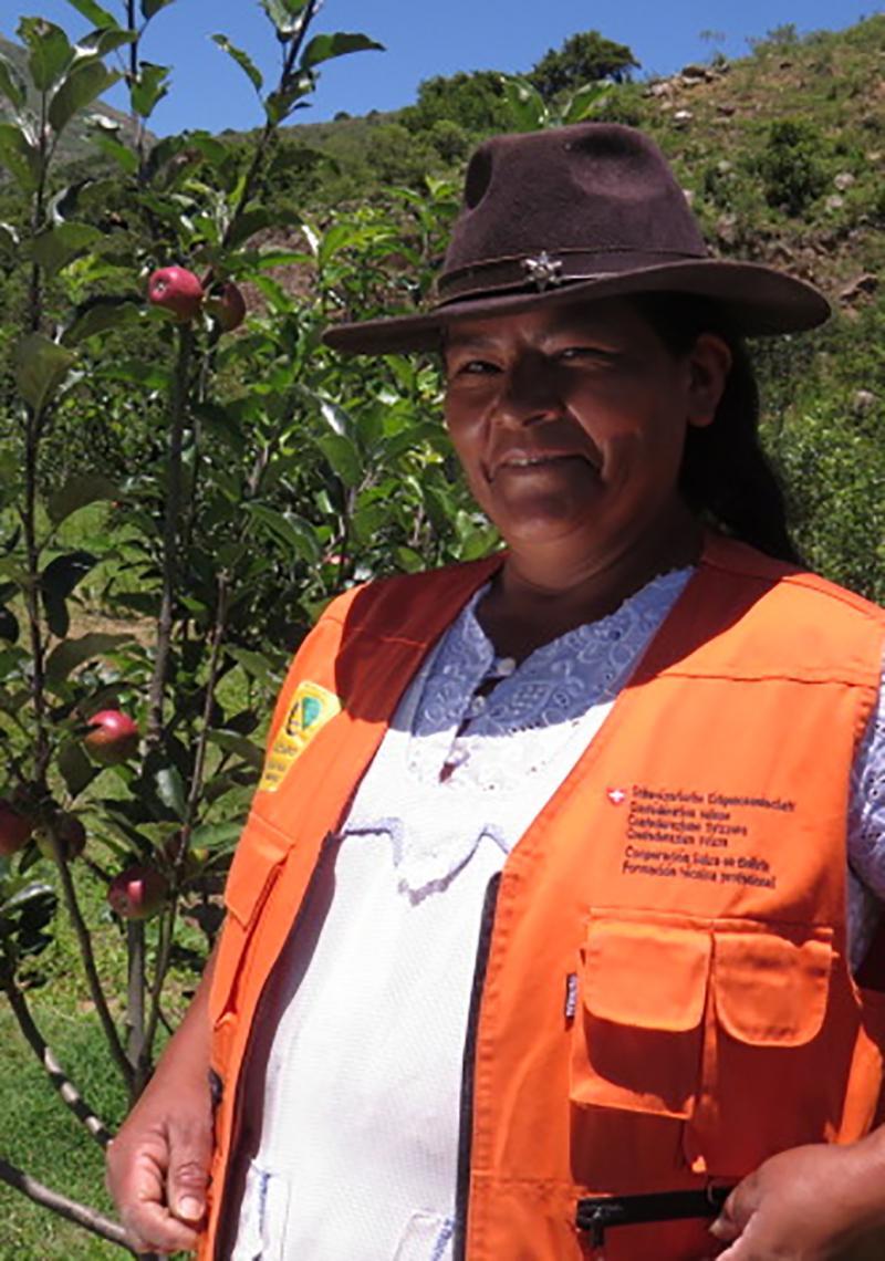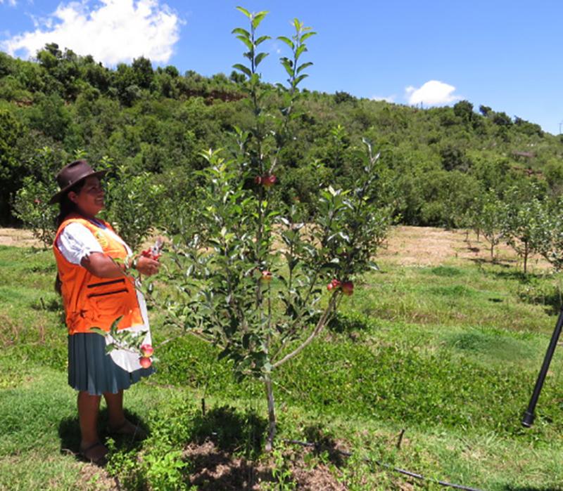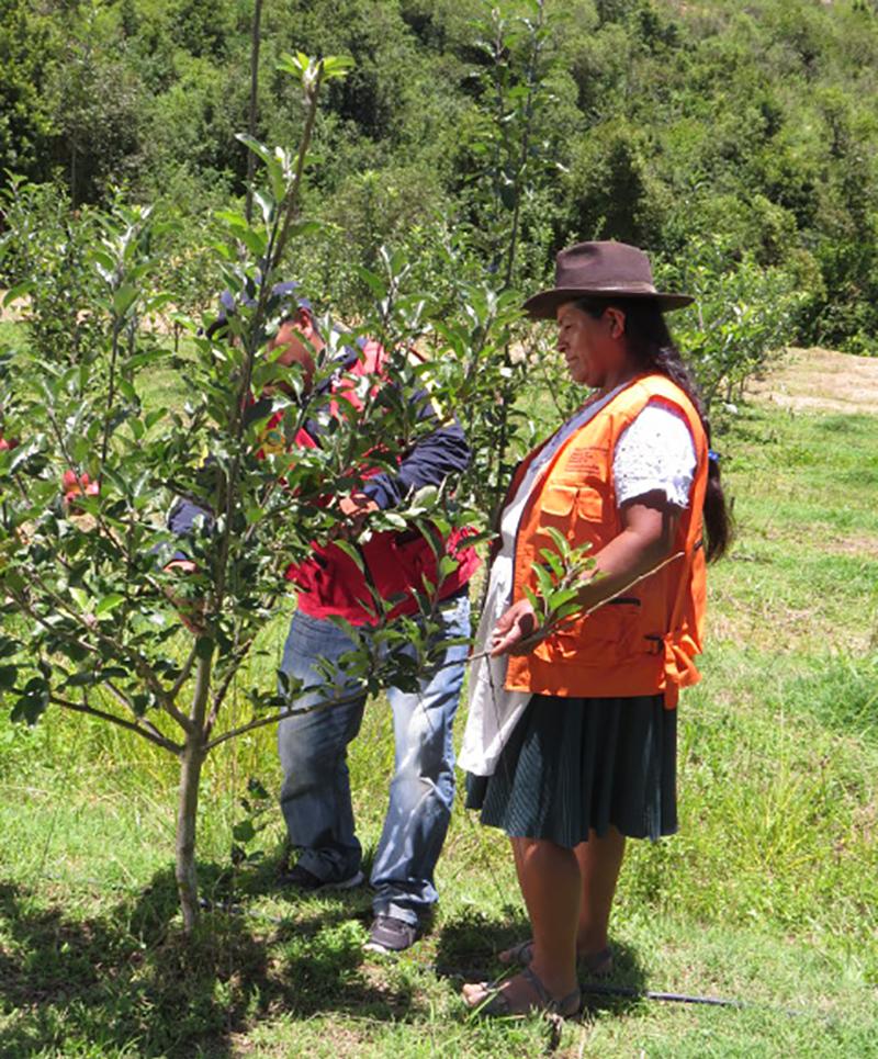 Margarita Céspedes pertenece a la asociación de productoras de manzanas “Las Rositas”, organizadas en la comunidad Limabamba dentro del municipio de Villa Alcalá (Chuquisaca). “el año 2012 iniciamos nuestra formación y al mismo tiempo nuestra plantación, poco a poco las plantas se han ido adaptando, han empezado a desarrollarse y ahora ya estamos viendo sus primeros frutos”, explica Margarita
