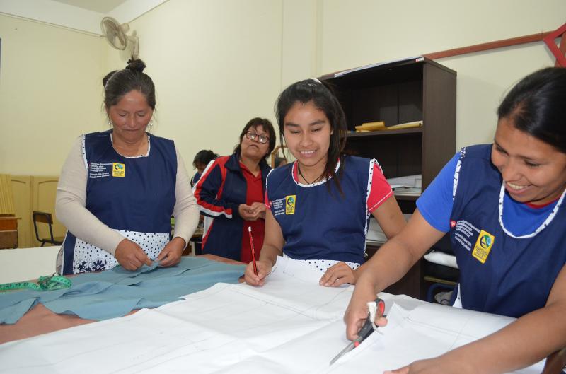 Algunas madres también van con sus hijos pequeños quienes juegan en el patio mientras su madres pasan clases y ellas, también, los usan como maniquíes para cuando se tiene la instrucción de elaborar trajes para pequeños.   Sobre este aspecto la docente Laura López indica que las participantes actualmente realizan uniformes para el kínder del colegio en el cual ocupan algunos ambientes.  Los centros están abiertos a dar estas facilidades para que las madres puedan participar en una carrera técnica.