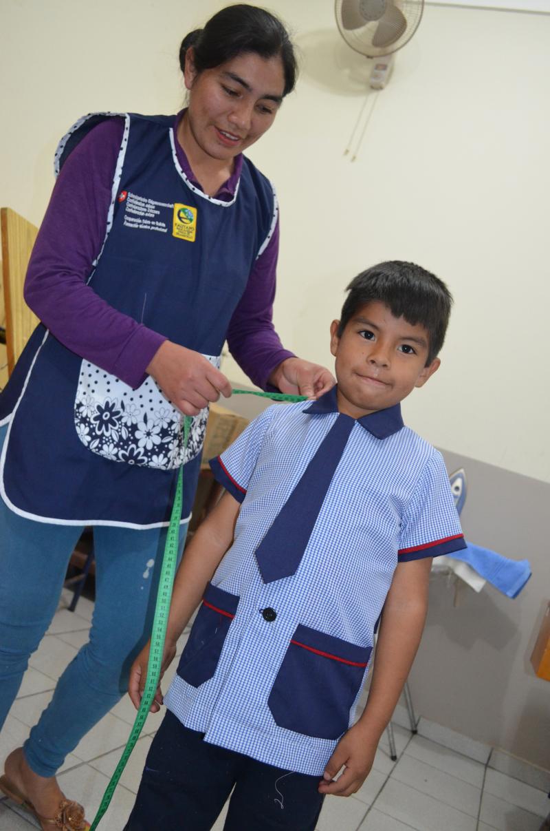 Una de las estudiantes quien realizó un mandilito para su hijo indica que empezó en la carrera porque le gustaba pero cuando supo costurar para ella y para su familia sintió que este era su camino para encontrar trabajo.