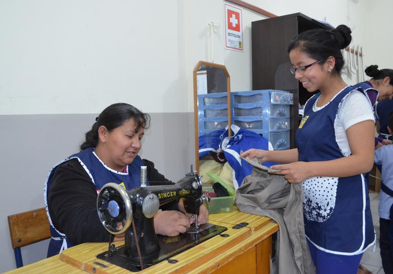 En la carrera de confección textil del Centro de Educación Alternativa de Yacuiba, Departamento de Tarija, rodeadas de hilos, agujas y telas se costuran historias de madres e hijas.  Un ejemplo de ello es de Ramona (madre) y Ruth (hija) quienes cada noche asisten, de siete a diez de la noche, a clases superando las distancias que dicen existen entre generaciones y, mesa por delante, cortan moldes para crean bonitas prendas.