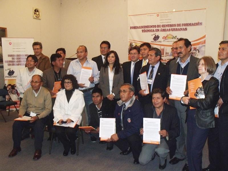 A través de un convenio entre la red PROCOSI, el Centro de Multiservicios Educativos (CEMSE) y la Cooperación Suiza en Bolivia, se entregará financiamiento, consistente en 750 mil bolivianos para que 20 institutos técnicos, entre fiscales, privados y de convenio, mejoren su infraestructura, adquieran equipamiento, adecuen su currículo a la nueva Ley Educativa Avelino Siñani, trabajen en temas de inserción laboral para incidir de manera positiva en la mejora de la calidad educativa y de vida de egresadas y egresados de formación técnica.