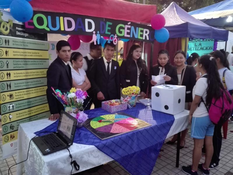 La feria educativa puso énfasis en el enfoque de género y armaron un stand específicamente sobre el tema para poder sensibilizar a las personas visitantes sobre la igualdad de oportunidades entre hombres y mujeres al acceso a la formación técnica.