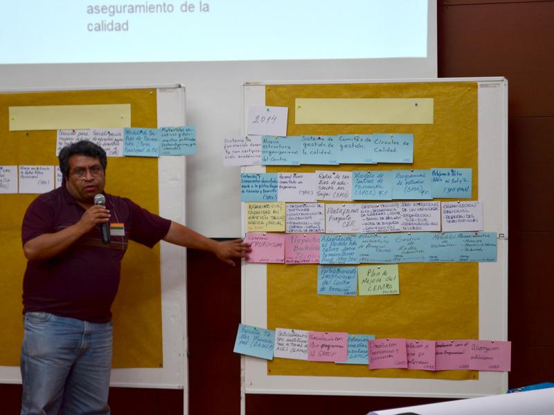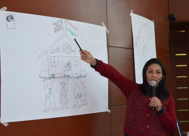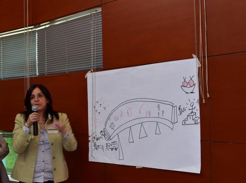 María Elena Cuellar, de la Fundación FAUTAPO, mostró en una gráfica la importancia de una formación técnica con pertinencia social. El ejercicio permitió reconocer el enfoque de la institución que aporte a la gestión del conocimiento.