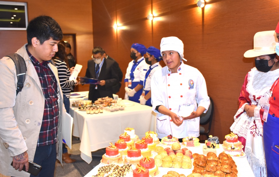 El profesor José Apala, en representación de la Dirección Distrital de Educación de la ciudad de La Paz,  felicitó por el desarrollo de este encuentro e indicó que el mismo permite complementar el trabajo que se realiza en centros de formación técnica que tiene que estar preparados para interactuar con el sector productivo y de servicios. “Este encuentro gastronómico para la promoción de prácticas profesionales es vital”, enfatizó.