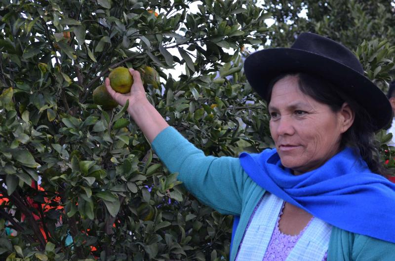 A la par Durán explicó a los visitantes que se incorporó el enfoque de género en el proceso formativo, lo que permite empoderar a mujeres productoras, a través de su participación y desarrollo de capacidades productivas. Actualmente, como prueba de ello, se cuenta con una directiva de mujeres que está estudiando los procesos de transformación de los cítricos.