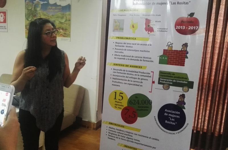 4. La experiencia de Formación técnica en la Asociación Integral de Mujeres las Rositas en Villa Alcalà (Chuquisaca); 5. La experiencia “Integralidad con enfoque de género” en el municipio de Pojo (Cochabamba). 6. La experiencia de “Recuperación de la planta de cabuya” con migrantes Quechuas en Caranavi (La Paz); 7. La experiencia “Desayuno escolar y pastelería” (aymaras) en Huatajata (La Paz); 8. La experiencia “Rol de las mujeres en la construcción de diálogo entre mineros y campesinos, frente a la contaminación de la cuenca del río Blanco“ en Potosí; y finalmente 9. La experiencia “inclusión de la mujer en la toma de decisiones y el desarrollo en el municipio de Yunchará (Tarija), experiencia que fue visitada por las y los participantes asistentes al encuentro.