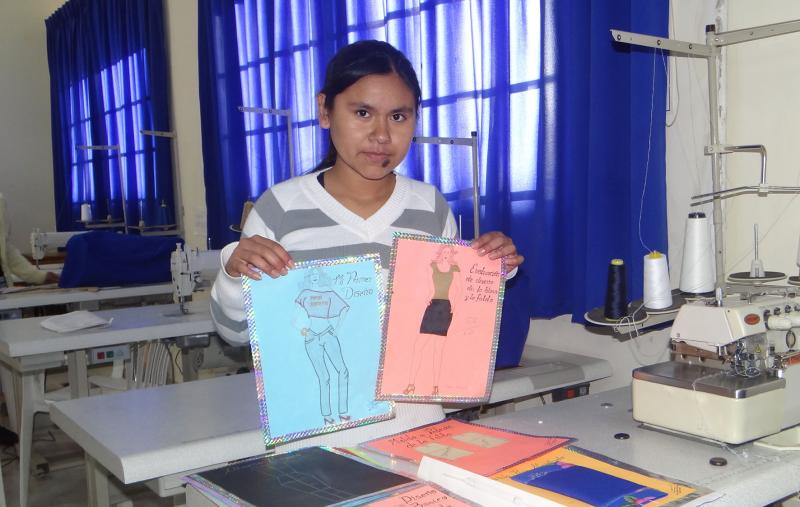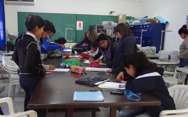 En la carrera de Confección de Ropa de Trabajo del Municipio de Caraparí en el Chaco Boliviano, participan niñas del internado del Colegio Manuel Cuellar y señoras de la comunidad quienes viven en Caraparí.