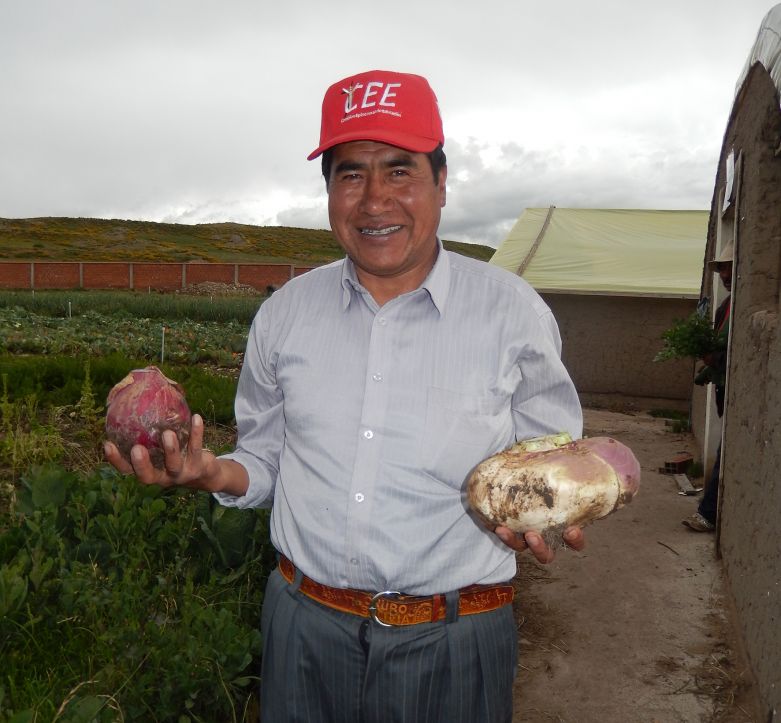 Los esfuerzos desplegados ya están dando resultados favorables, a través de la aplicación del modelo socio comunitario productivo en las actividades formativas. “Estamos desarrollando una producción de hortalizas ecológicas mediante el uso de materia orgánica, guano, humus de lombriz, compost vegetativo; no utilizamos ningún fertilizante químico. Estos avances permiten el desarrollo de una producción que asegura una alimentación saludable. Esto mismo se está replicando en las familias, mediante la creación de los huertos familiares, bajo el concepto del trabajo productivo del Centro”, afirma Pedro Poma. Asimismo, se tiene la construcción de dos carpas solares que cuentan con sistemas de riego por goteo, dos campos de producción potenciados mediante el riego por aspersión con una producción muy valiosa en términos agropecuarios y también se ha potenciado el trabajo colaborativo entre estudiantes y padres de familia, tanto en el centro educativo como en sus propios hogares. A todo esto también se sumó el Municipio de Pucarani quien compró un motocultor, a fines de la Gestión 2016, para la preparación de la siembra en la UE.