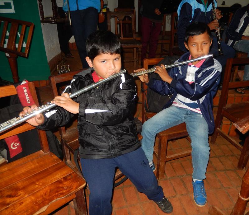 Niños flautistas en pleno ensayo de la Orquesta y coro de Urubichá.
