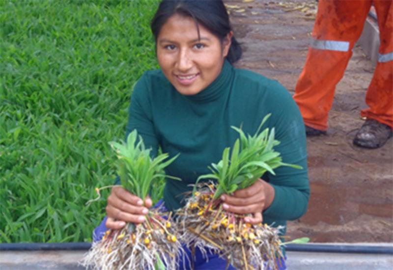 Una participante de la carrera de bovinos de leche en Yacuiba nos muestra la cosecha de forraje hidropónico, una interesante alternativa implementada para abaratar los costos de alimentación para el ganado.