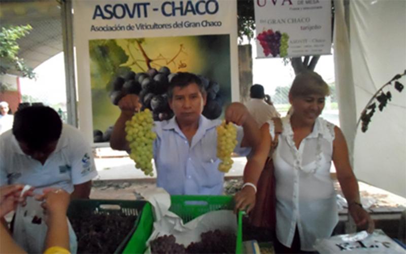 Mostrando los frutos de la vendimia en el Chaco con los graduados de la carrera técnica de producción vitícola de Yacuiba.