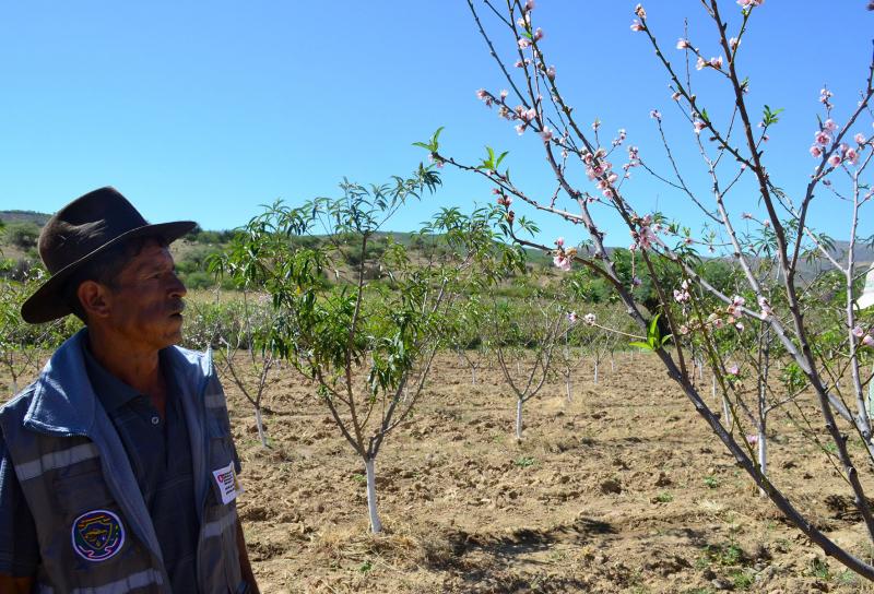 Valentín Panoso es uno de los productores que  cuenta con un huerto frutícola de 200 plantas y es parte y es un destacado participante de la modalidad de  “formación con producción “. Señala que el año pasado ya obtuvo en su huerto unos 300 kilos de duraznos que los vendió en el mercado de Aiquile y espera que para esta gestión,  obtendrá  1400 kilos aproximadamente, lo que significará un incremento significativo tanto en experiencia como en ingresos económicos.