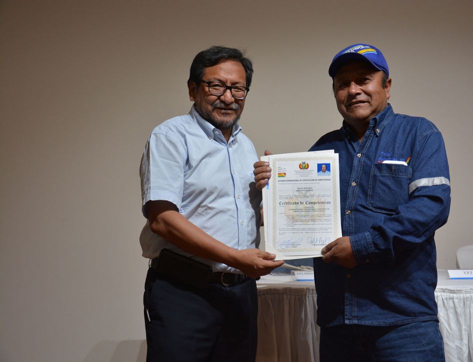 Desde el 2008 el SPCC, dependiente del Viceministerio de Educación Alternativa y Especial, trabaja en la certificación de competencias de cientos de trabajadores y productores bolivianos de distintas ocupaciones, que aprendieron sus conocimientos y destrezas a lo largo de la vida, haciendo de la experiencia diaria su método de aprendizaje permanente. El trabajo de certificación se realiza con el apoyo financiero del proyecto Formación técnica profesional de la Cooperación Suiza.