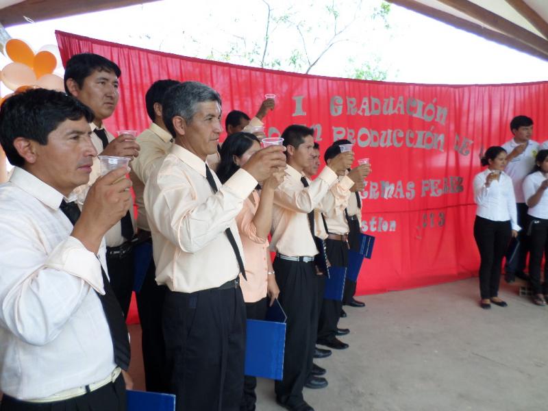 26 participantes de la carrera de Producción de Bovinos mostraron con orgullo sus títulos profesionales en solemne acto realizado hace unos días en la Unidad Educativa 2 de Agosto de la comunidad Las Sidras del Municipio Caraparí en el Chaco boliviano. 18 de ellos son técnicos medios y 8 técnicos auxiliares. ¡¡¡Felicitaciones!!