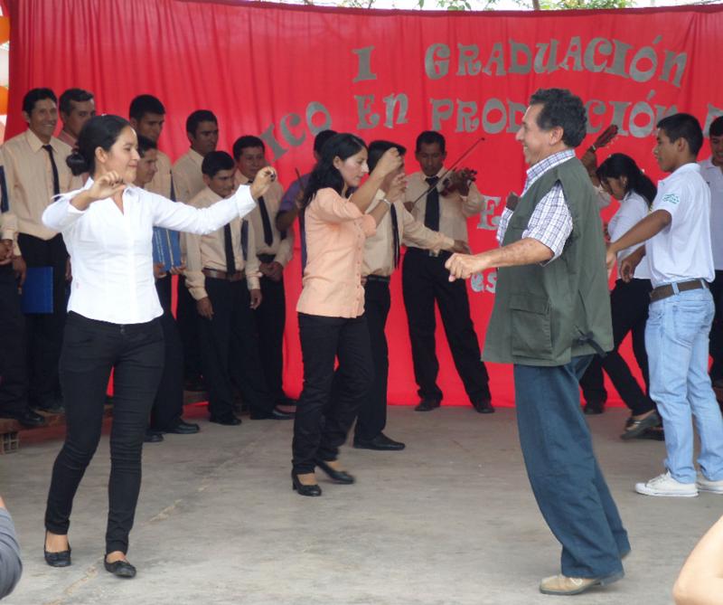 A ritmo de bombo, violín y guitarra los flamantes profesionales festejaron este importante logro y bailaron luego de los actos protocolares con un grupo organizado por los propios participantes. El profesoror, Dr. Nicolas Romero, baila en la foto contento con una de las participantes de la carrera.