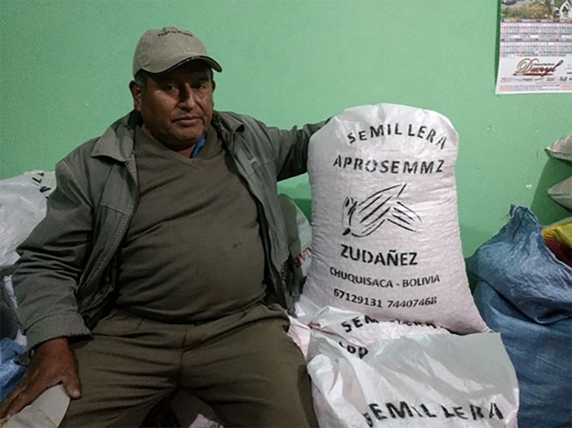 Luis Cayo Vargas es el presidente de la Asociación de Productores de Semilla de Maíz de Zudáñez (APROSEMMZ) en Chuquisaca, organización que agrupa a 35 afiliados. Vargas nos explica que esta organización cuentan con un mercado seguro para el maíz y que venden la producción a la Gobernación de Chuquisaca y a diversas alcaldías de Potosí.