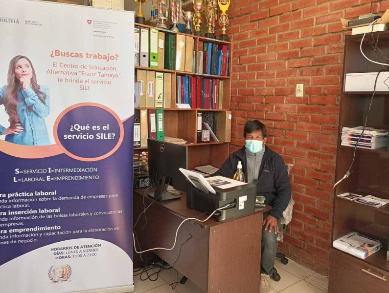 Son varios los resultados positivos del funcionamiento de la oficina del Servicio de Intermediación Laboral y Emprendimiento (SILE) en el Centro de Educación Alternativa “Franz Tamayo”. Actualmente los responsables de la atención de este servicio ya registraron participantes en el sistema de información y también a quienes ya accedieron a un empleo.
