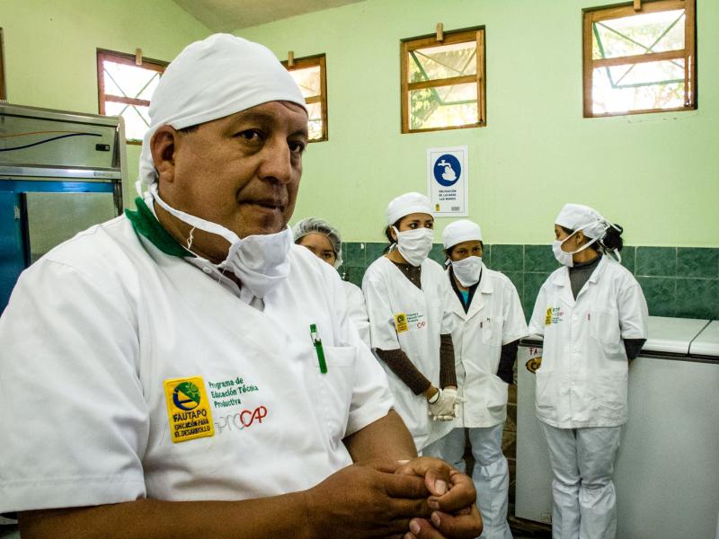 El profesor Antenor Barriga, un profesional que apoya la carrera de "Producción de Lácteos".  Sus cursos generalmente cuentan con alrededor de 20 participantes, la mayoría mujeres.  La clases se desarrollan de forma práctica, logrando que el participante cuente con mayor experiencia, según nos comentó.