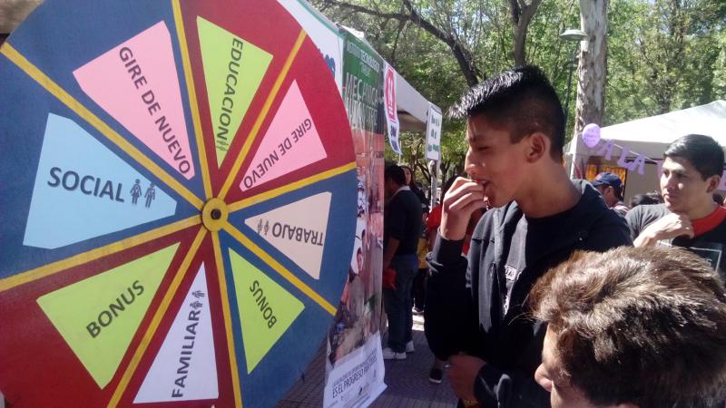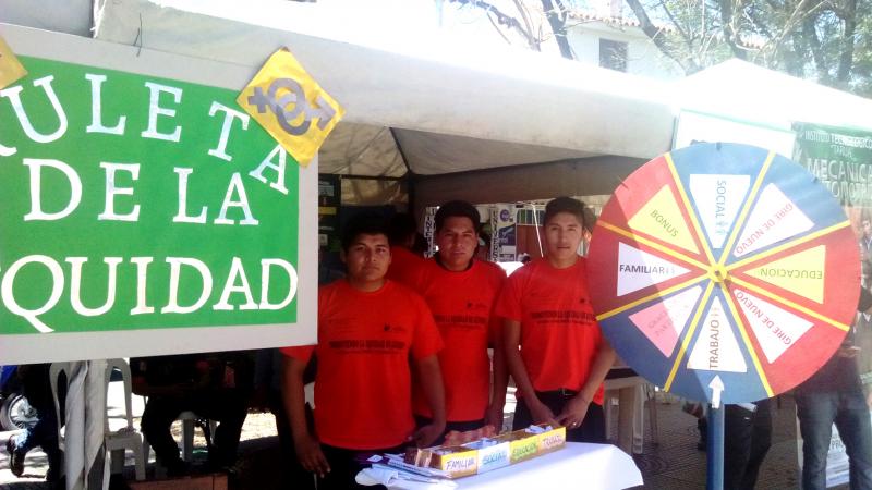 A través de este juego, La ruleta de la equidad, los visitantes pudieron conocer sobre el tema de género en diferentes ámbitos: social, familiar, educación y trabajo. Si la respuesta era correcta recibían un chocolate de regalo, a la par de información adicional valiosa que los propios estudiantes complementaban.