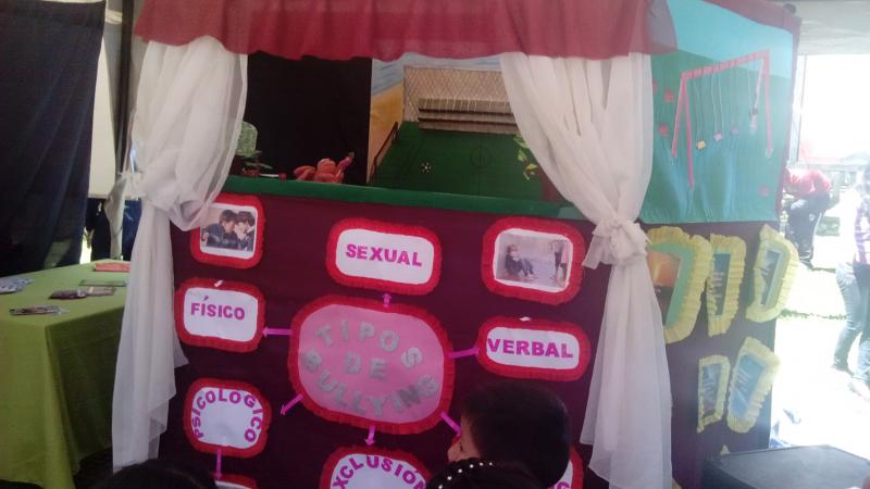 Uno de los stands realizó la presentación de títeres que tocaron el tema de "bullyng" en el cual se mostró como la violencia está presente en diferentes instancias educativas dañando tanto a hombres como a mujeres.