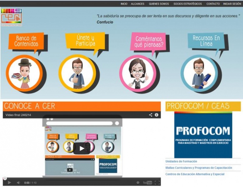 www.cer.edu.bo es el espacio de aprendizaje que actualmente cuenta con más 50 integrantes registrados, pertenecientes a las distintas entidades, los cuales ya hacen uso de las ventajas que ofrece esta plataforma. ¿Cuáles los servicios que ofrece? Un banco de recursos con más de 80 publicaciones referentes a unidades de aprendizaje, programas de capacitación, mallas curriculares, documentos de apoyo a la sistematización de experiencias correspondientes al Programa de Formación Continua (PROFOCOM) que pueden ser descargadas inmediatamente. A la par, el o la docente también puede encontrar experiencias compartidas de todo el país.